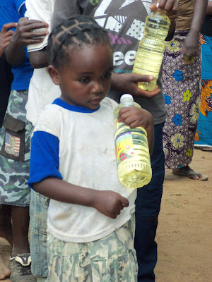 In these photos, the children were given cooking oil, rice and kapenta. Yummy!!